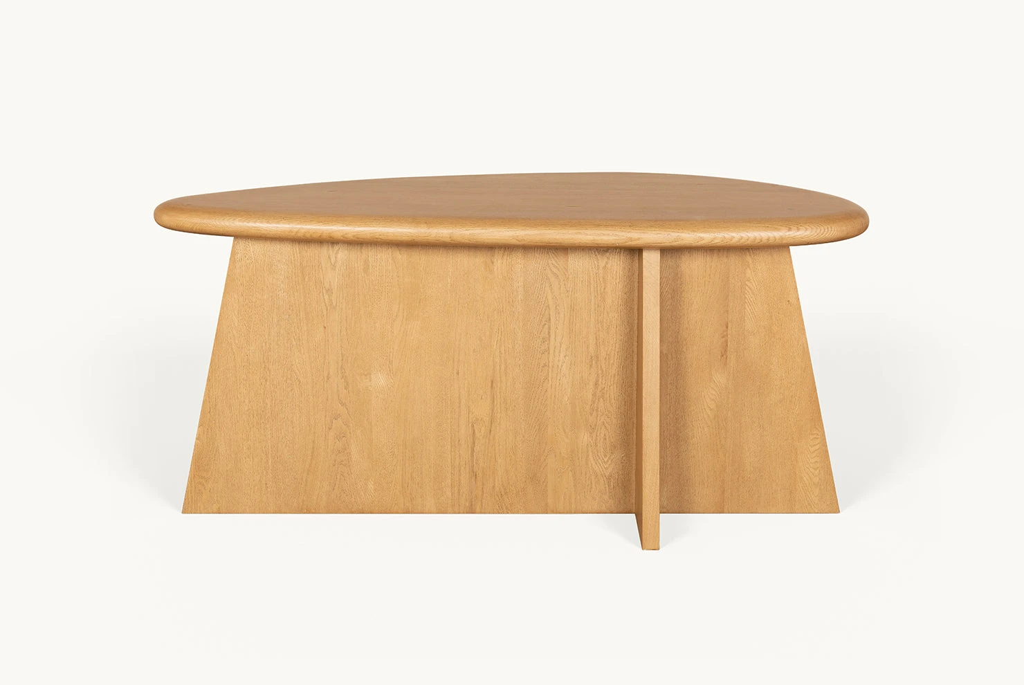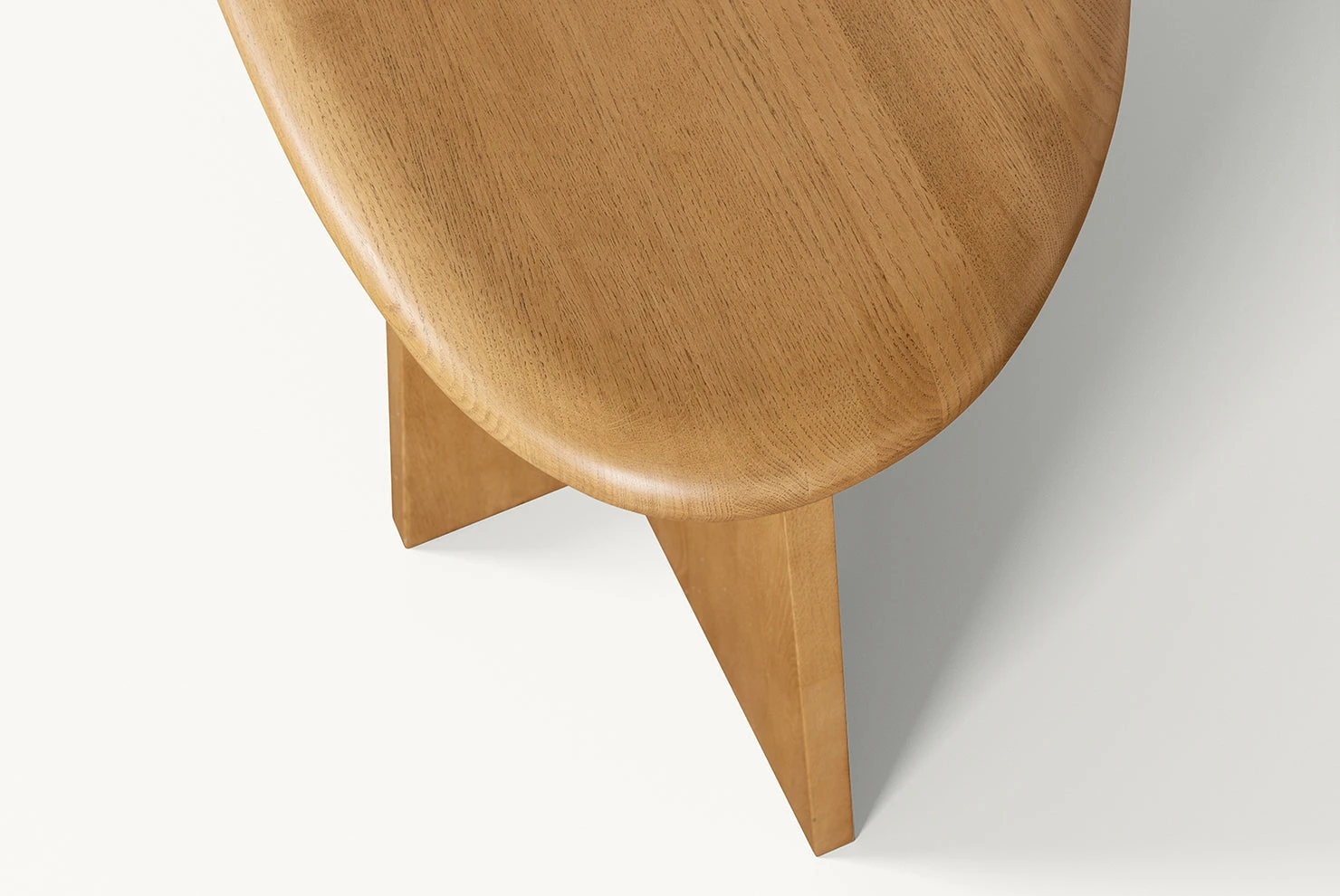 A whimsical, asymmetrical shape crafted entirely from solid American red oak. Amina’s contrasting details—like the rounded edge, angular base, and gently hammered top—make it truly one of a kind.