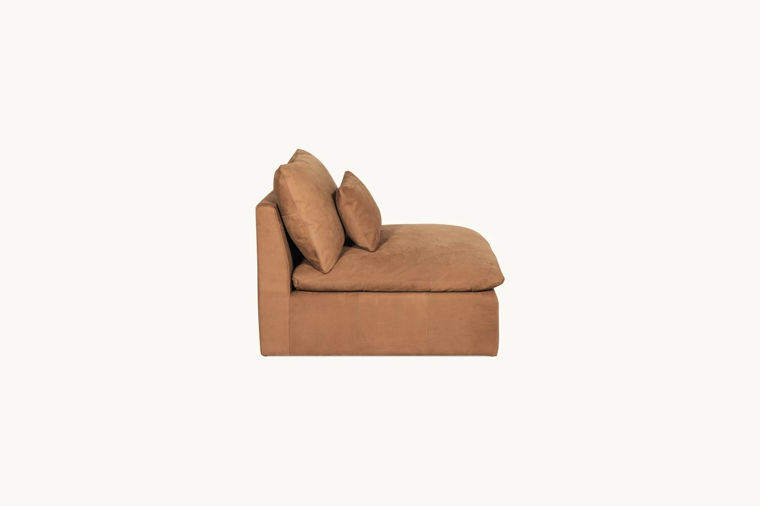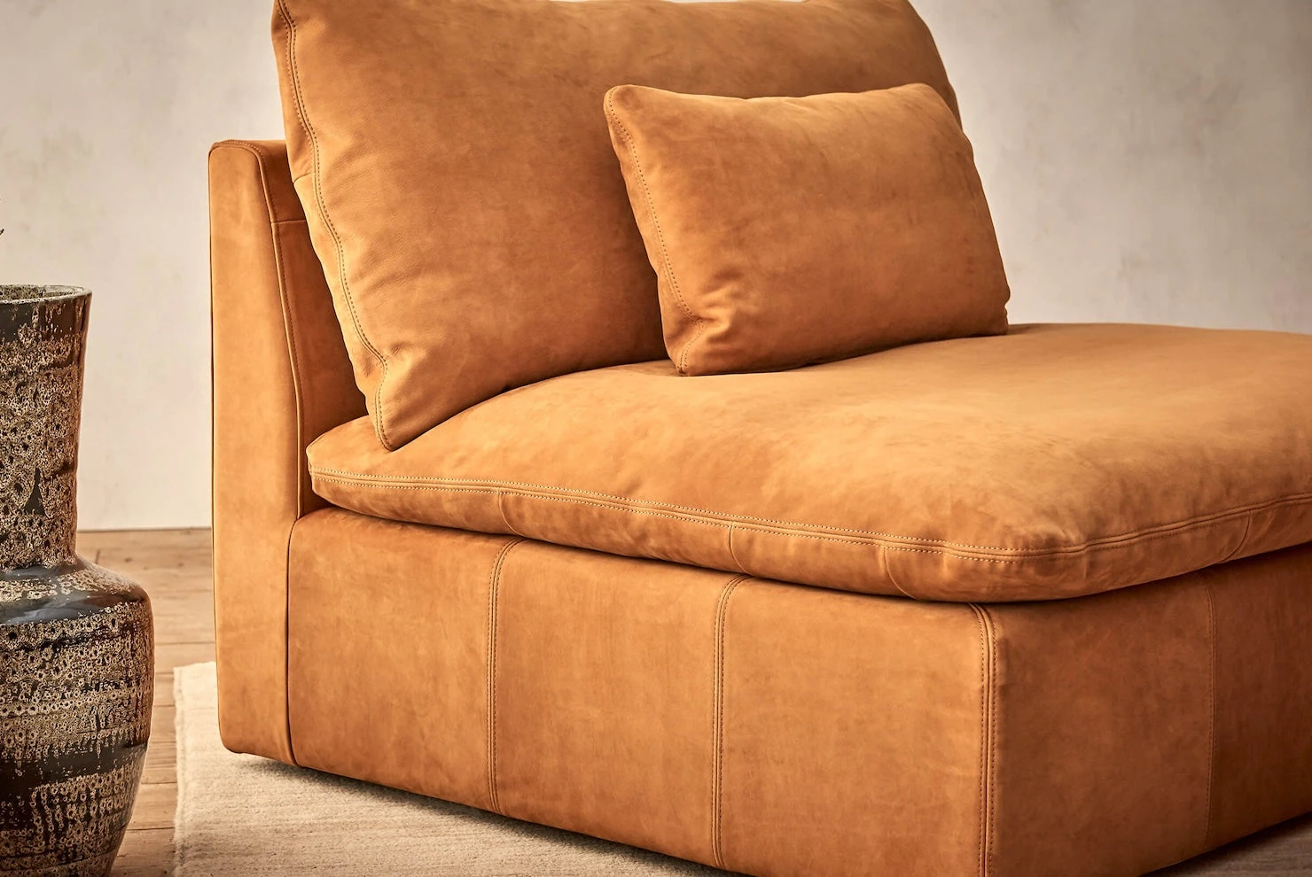 The airy, armless openness of Aria, covered in a suede-like French nubuck leather, hand-sanded for a seductively soft feel, and drum dyed to create three rich colorways.