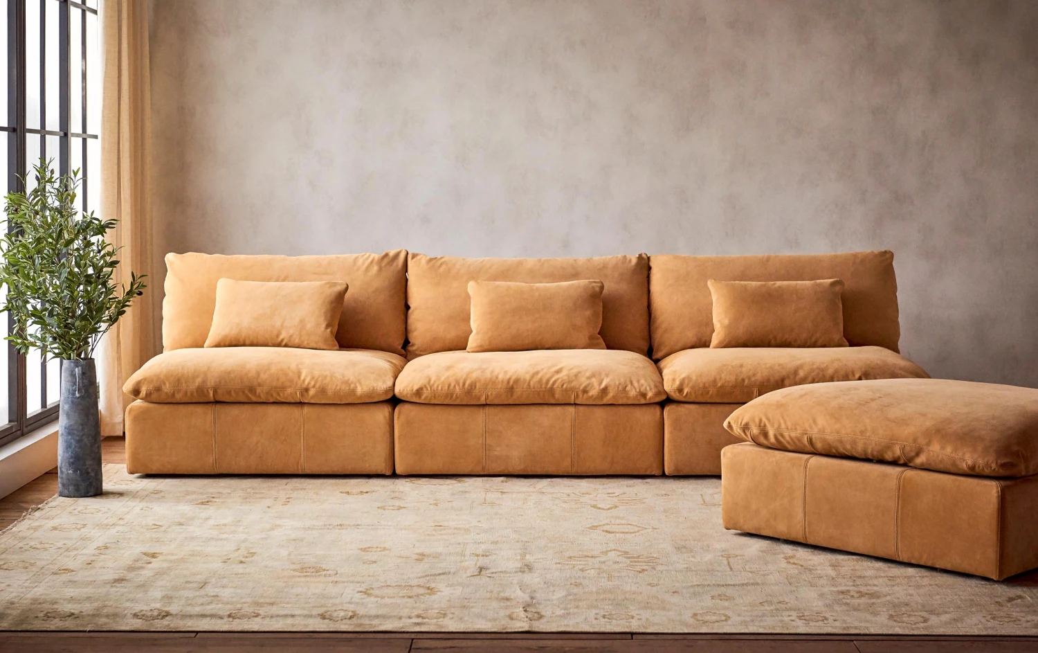 The airy, armless openness of Aria, covered in a suede-like French nubuck leather, hand-sanded for a seductively soft feel, and drum dyed to create three rich colorways.