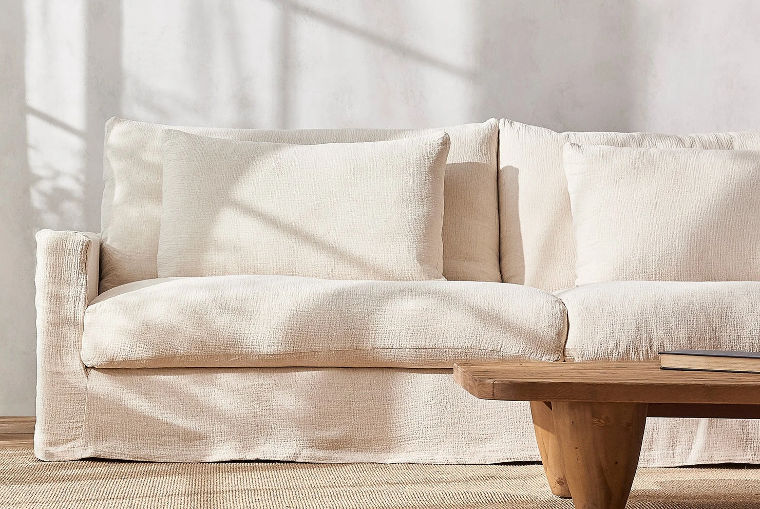 Lush, deep-seat comfort with chilled out, modern lines. Devyn’s contemporary shape and breezy slipcover create a unique balance that’s equal parts refined and laid back.