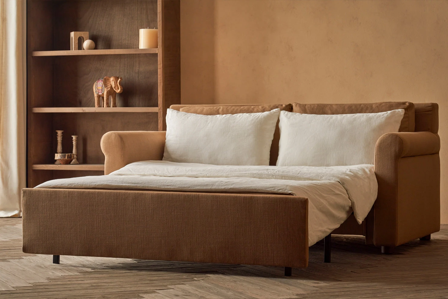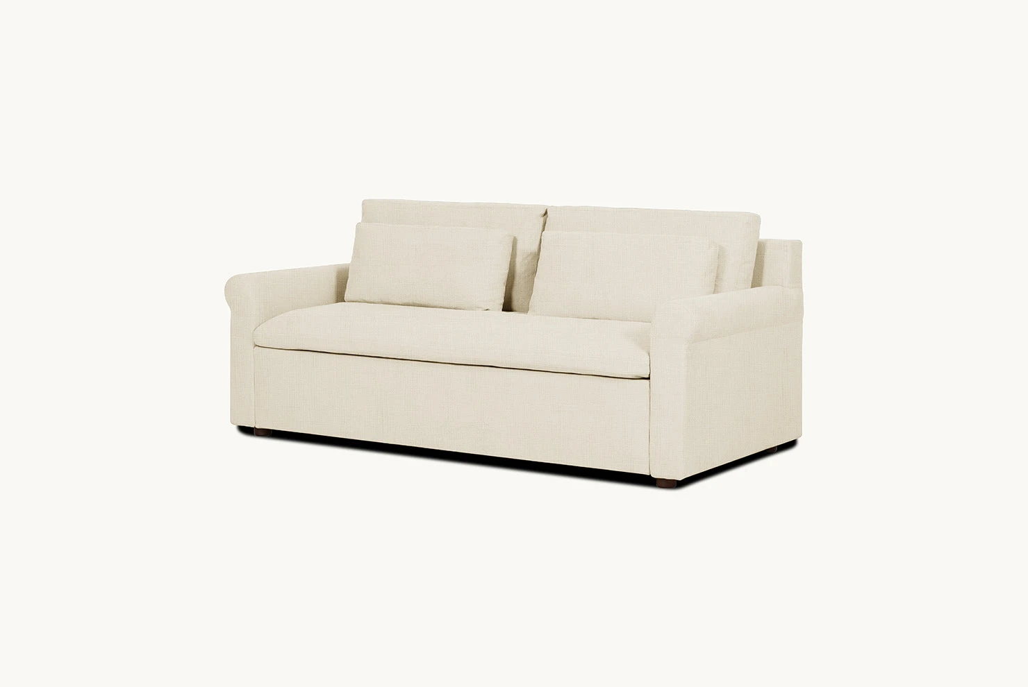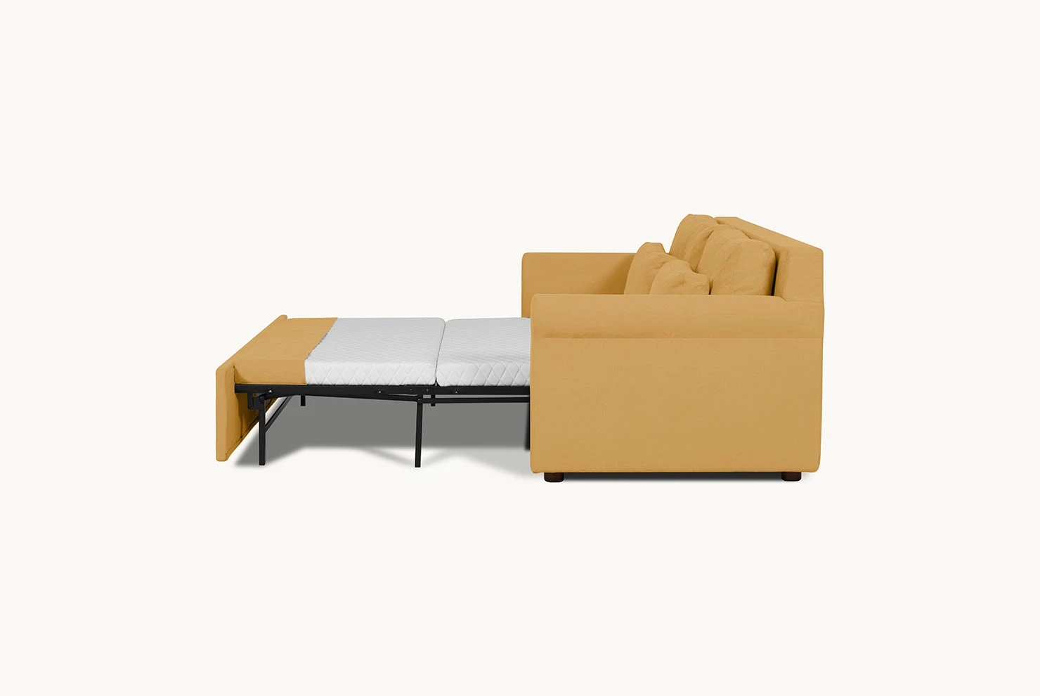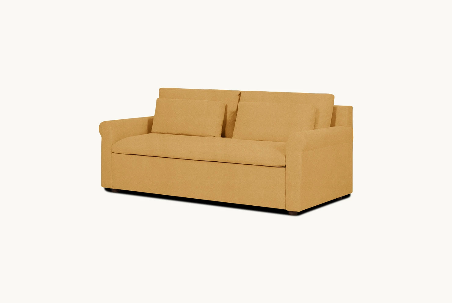 A fully upholstered sleeper with Elias’ quintessential roll arm. Featuring an all-natural cotton quilted, premium layered foam mattress, and built on a silky smooth tri-fold gliding frame.