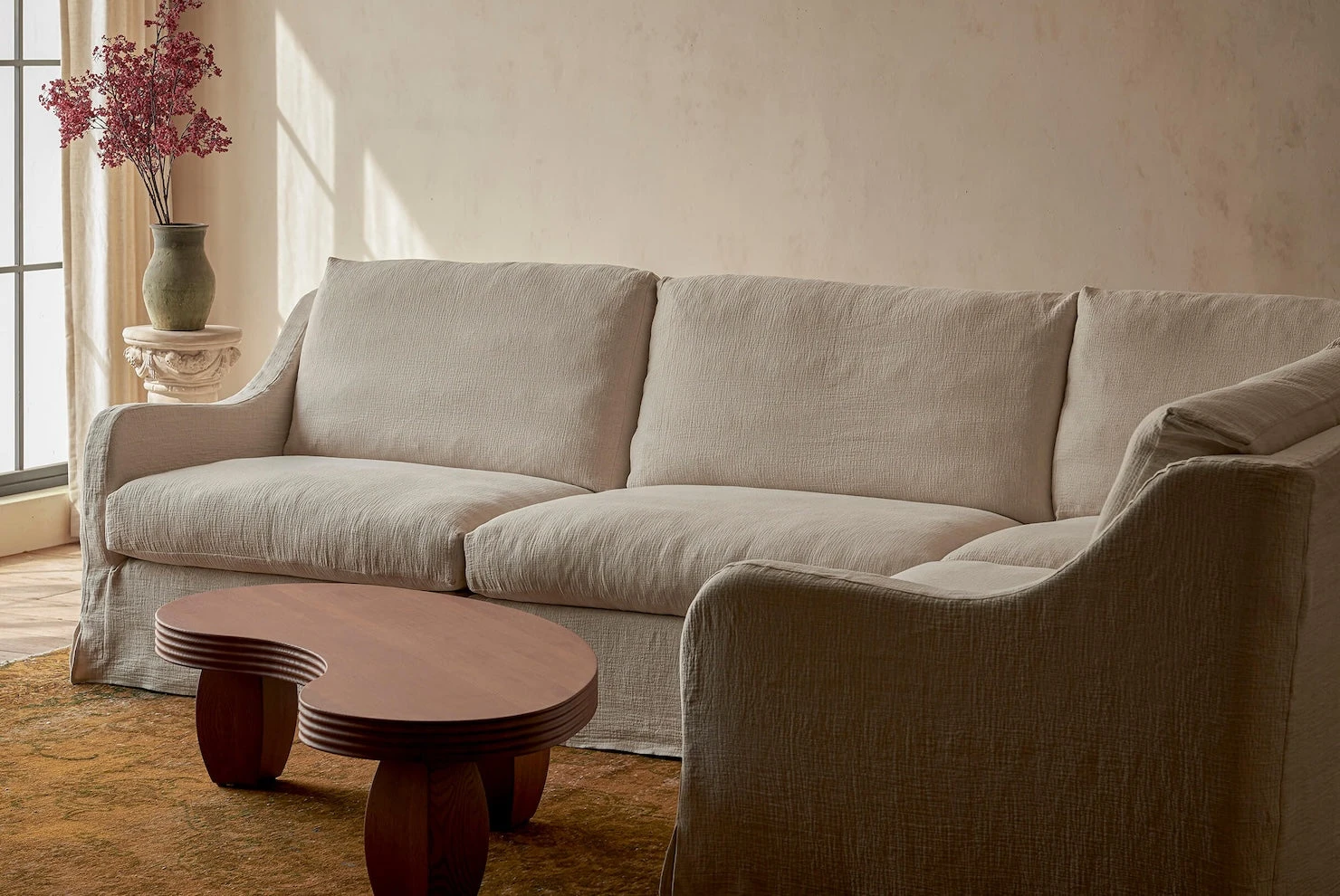 Esmé’s generously deep seat, extra fluffy cushions, and playful curves made modular to shift with your style and your space.