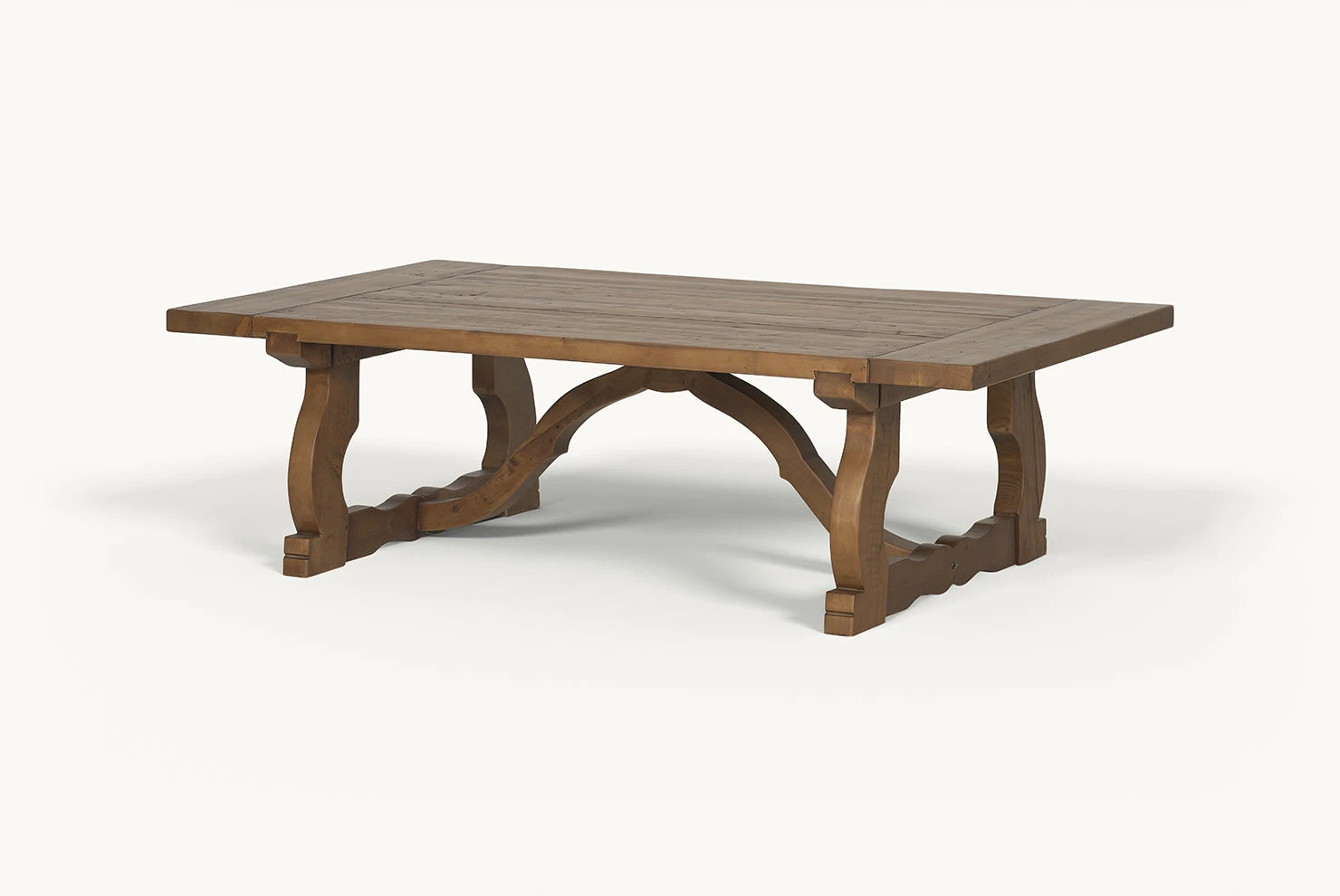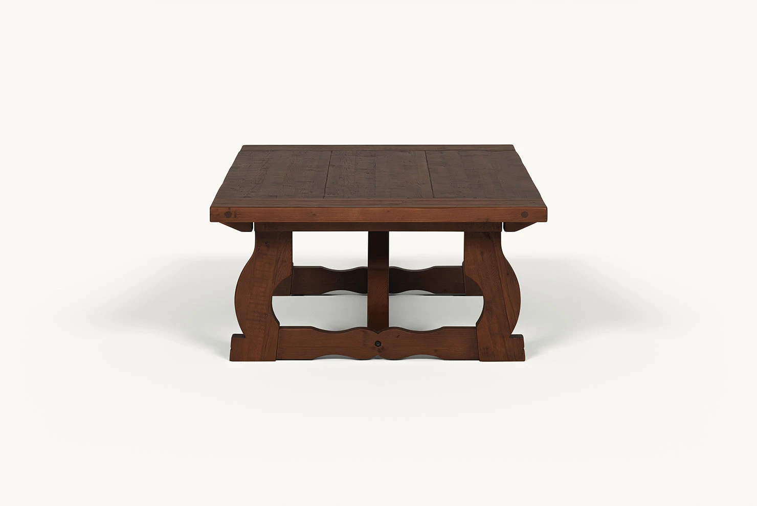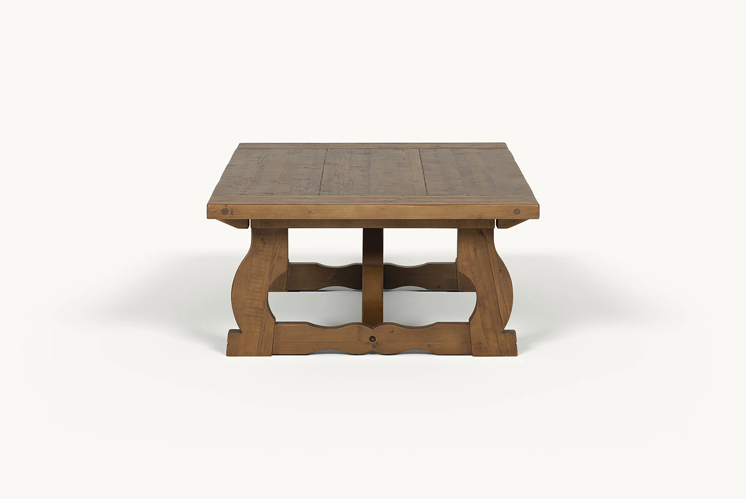 An exquisitely carved revitalization of the rustic, 18th-century Spanish coffee tables that history has immortalized. Crafted entirely from storied reclaimed pine, Leona is a focal point that vibrates with the tales of its prior life.