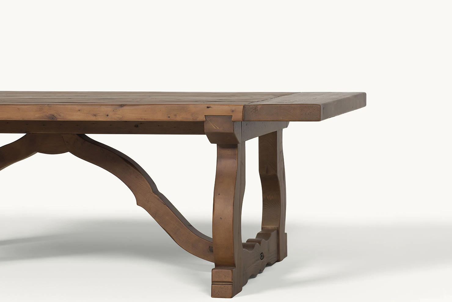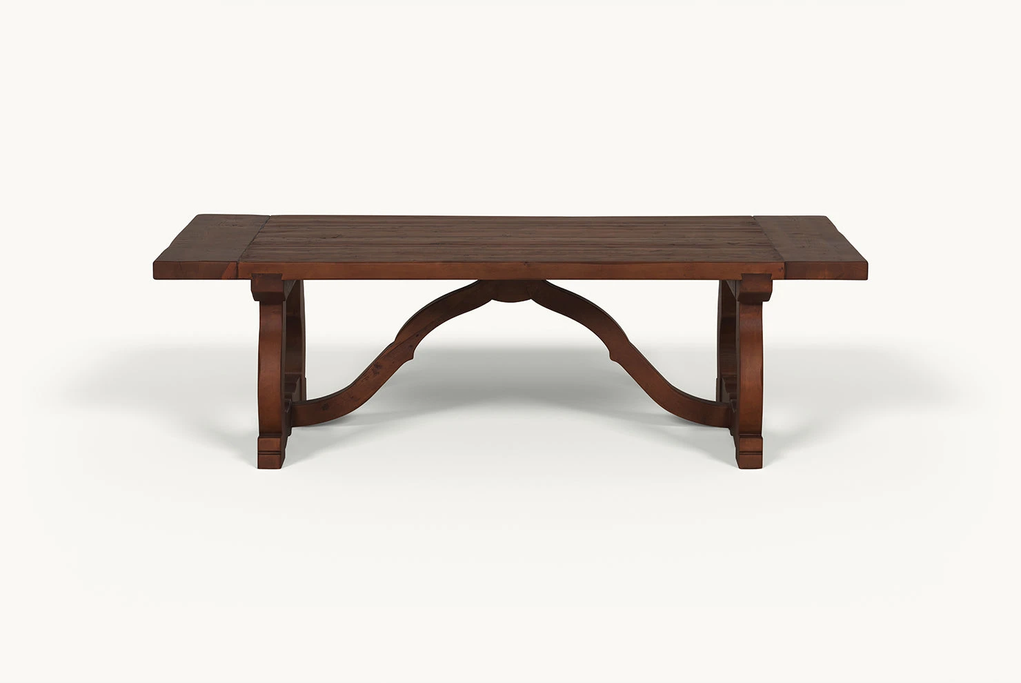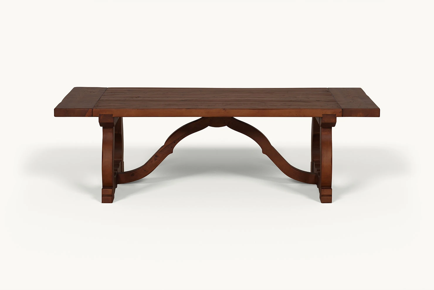 An exquisitely carved revitalization of the rustic, 18th-century Spanish coffee tables that history has immortalized. Crafted entirely from storied reclaimed pine, Leona is a focal point that vibrates with the tales of its prior life.
