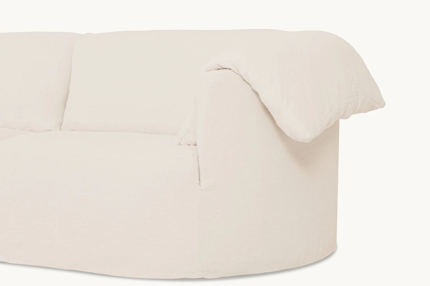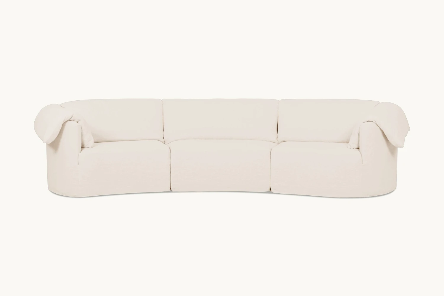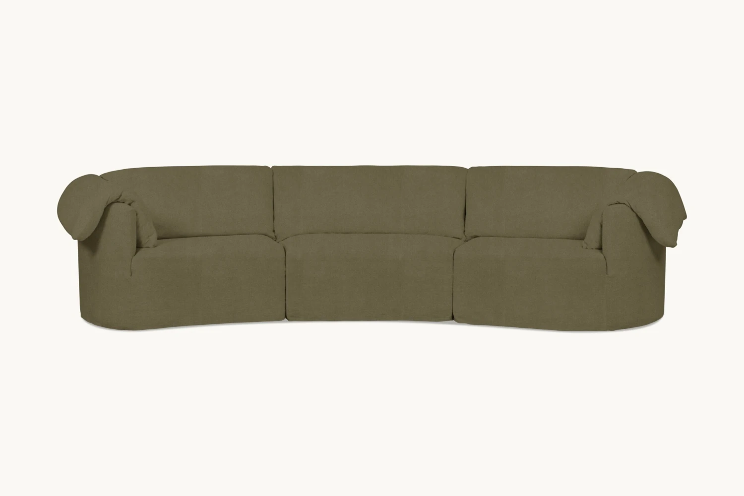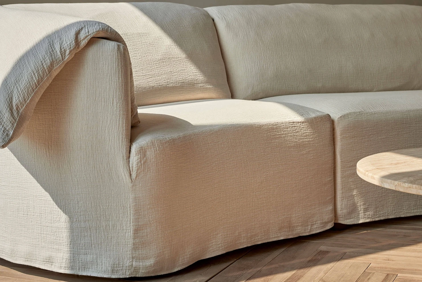 Loula is an antique-inspired jewel wrapped in modern comfort, with a minimal curved seat that flows with timeless charm. Its back cushions are sumptuous and effortlessly draped for contemporary coziness. And, like all of our sectionals, Loula is modular, so it can evolve with you and your space.