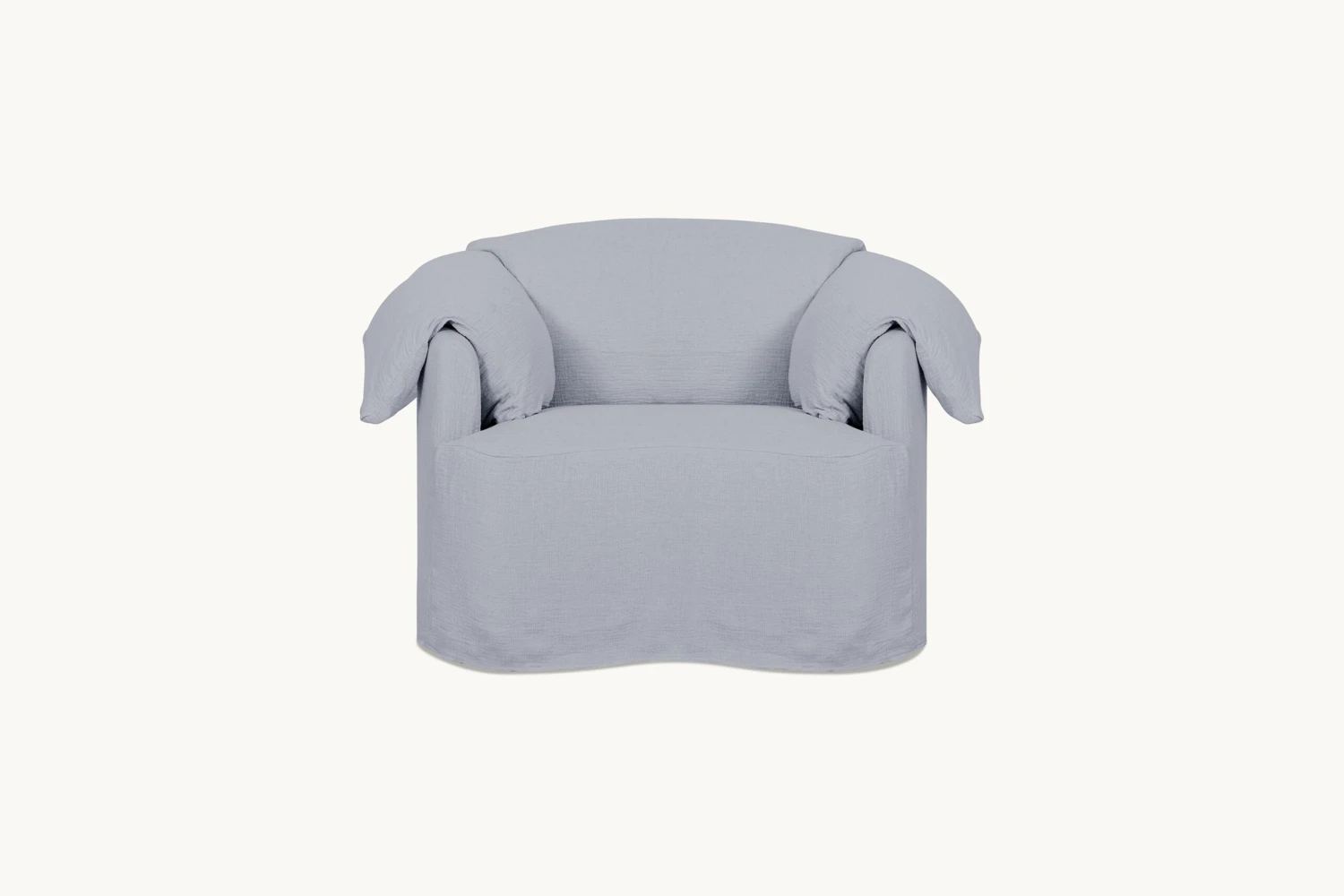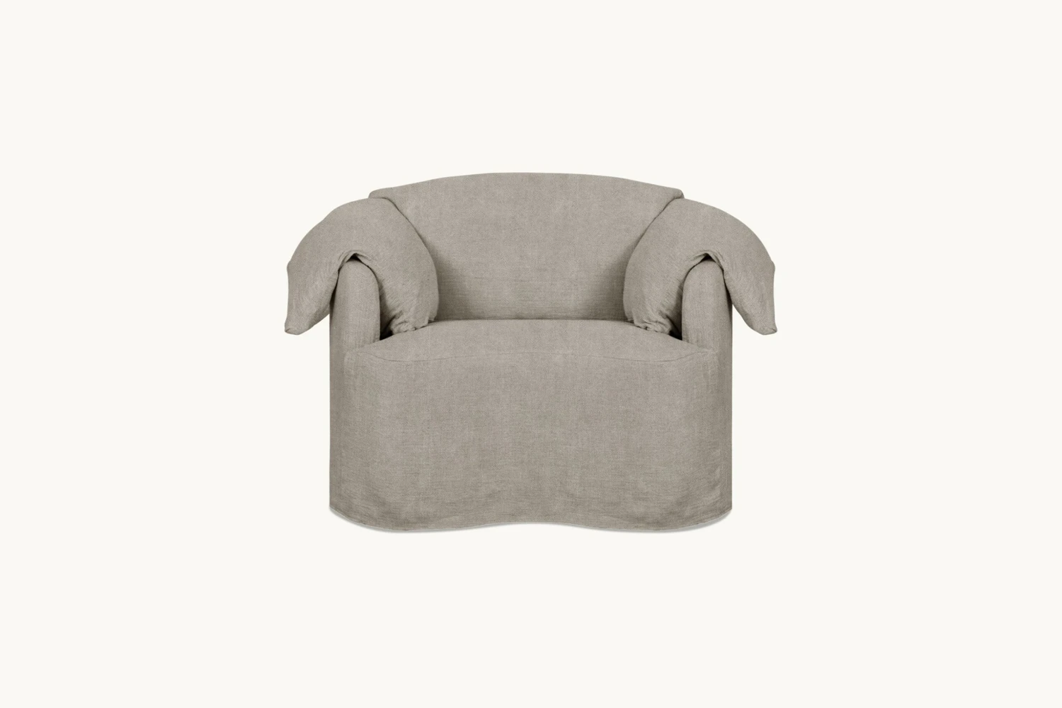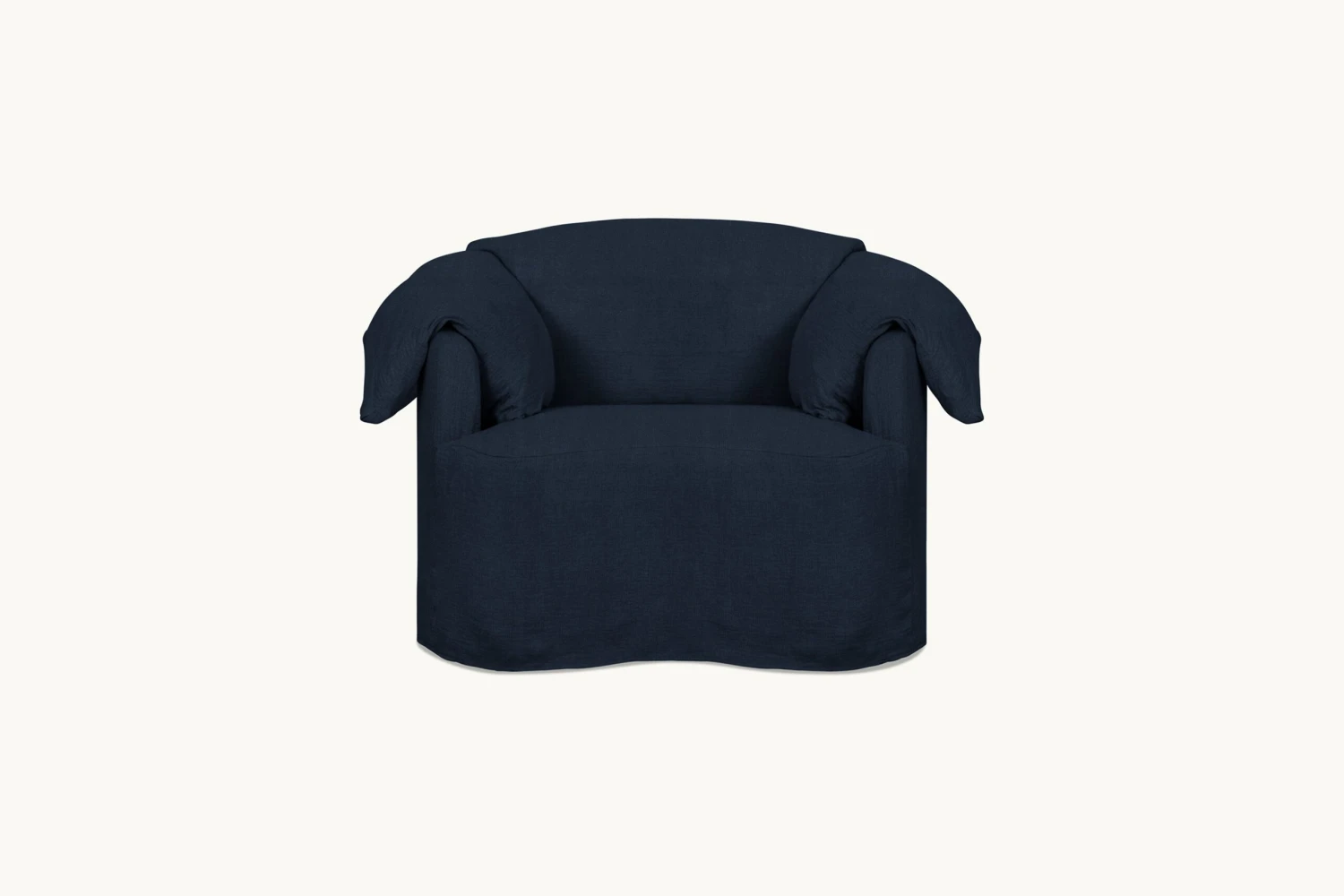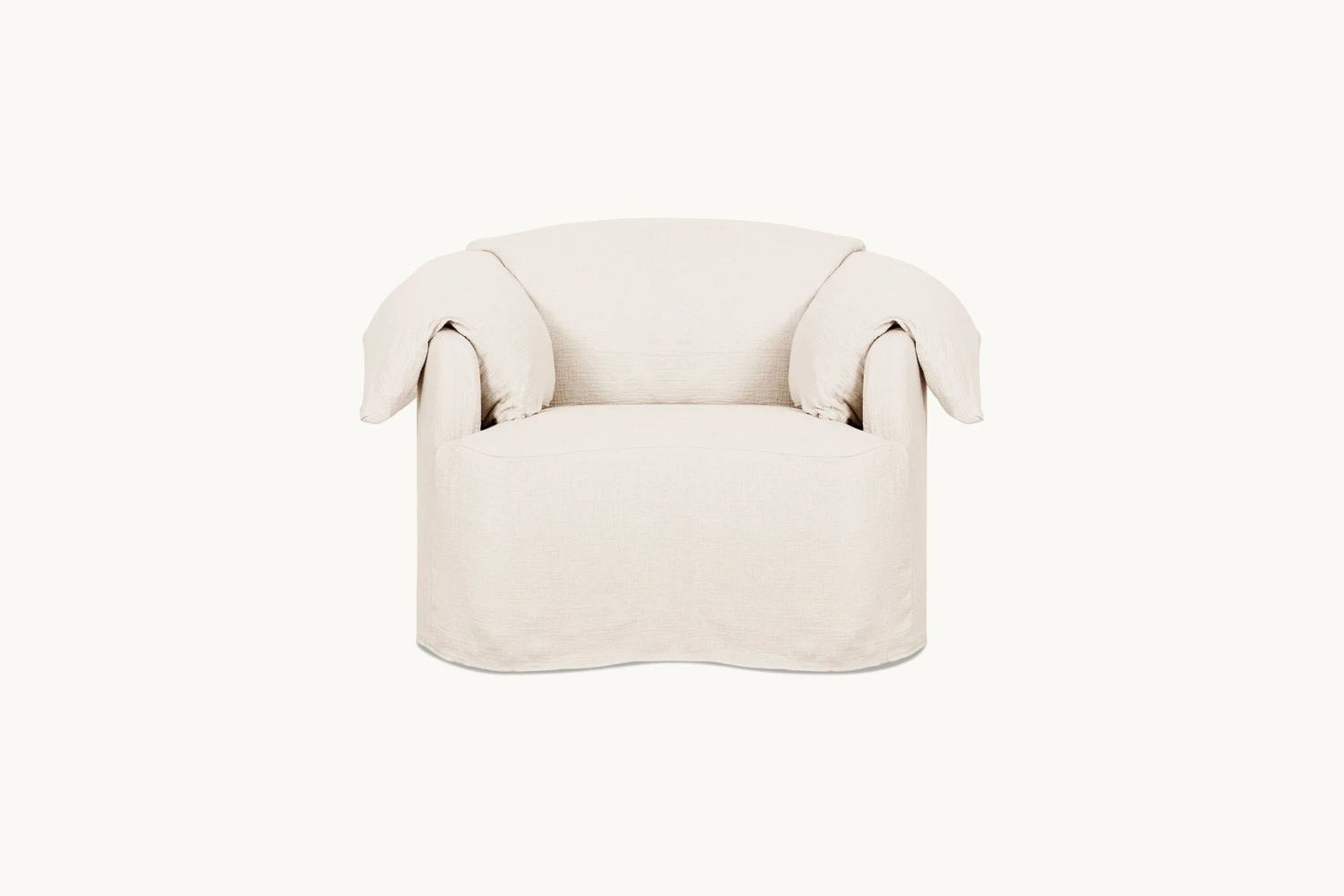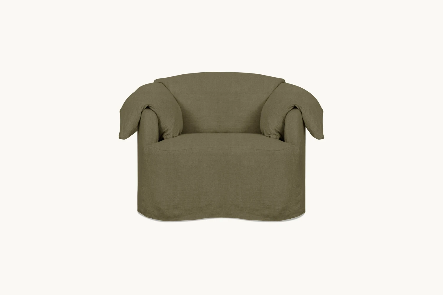 Loula’s glamorously draped, exceptionally plush back cushions and supple seat swaddle you in cushy comfort. The smooth, 360° swivel and washable, swappable slipcover? That’s the cherry on top.