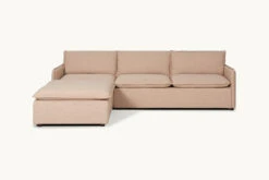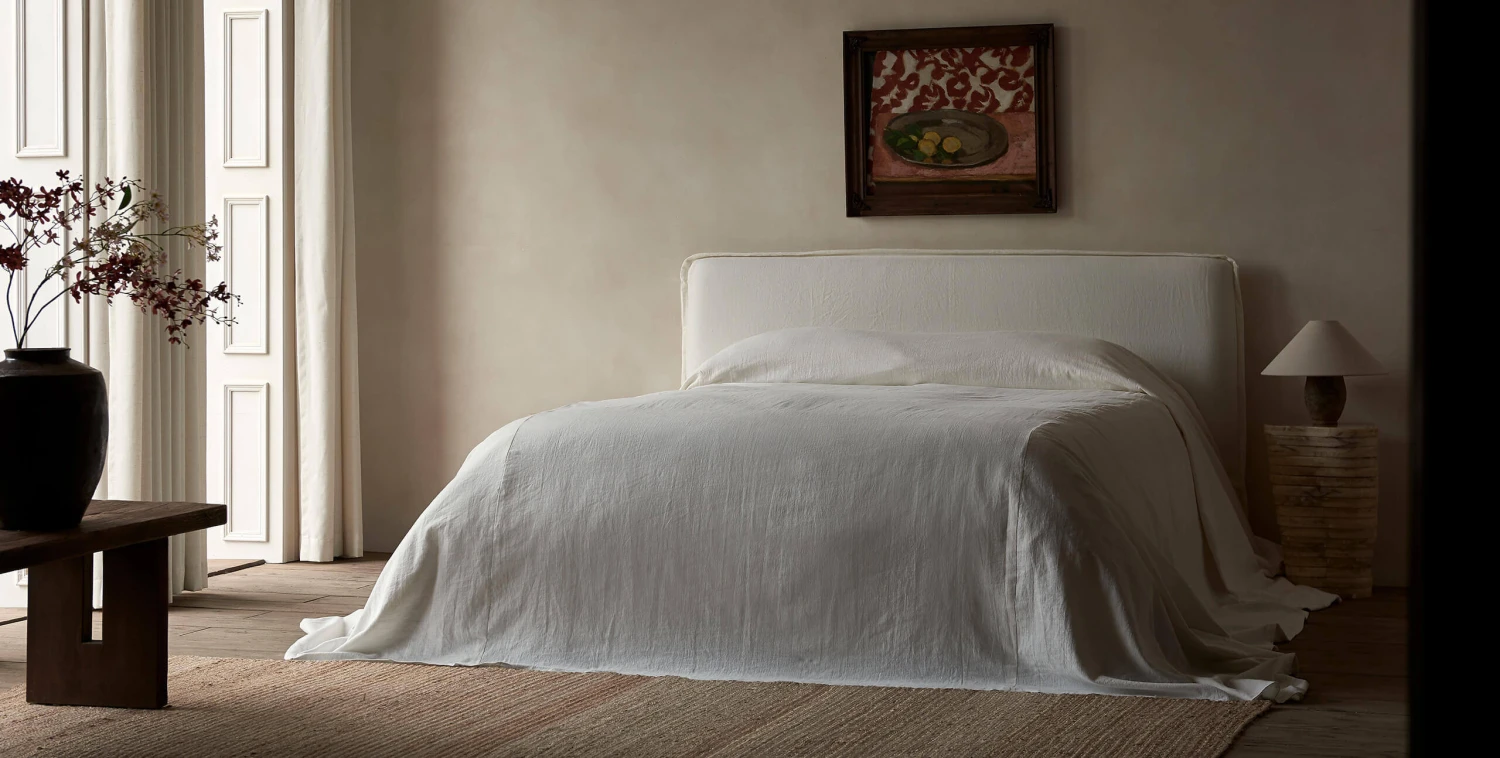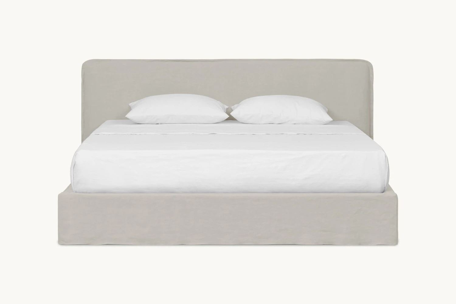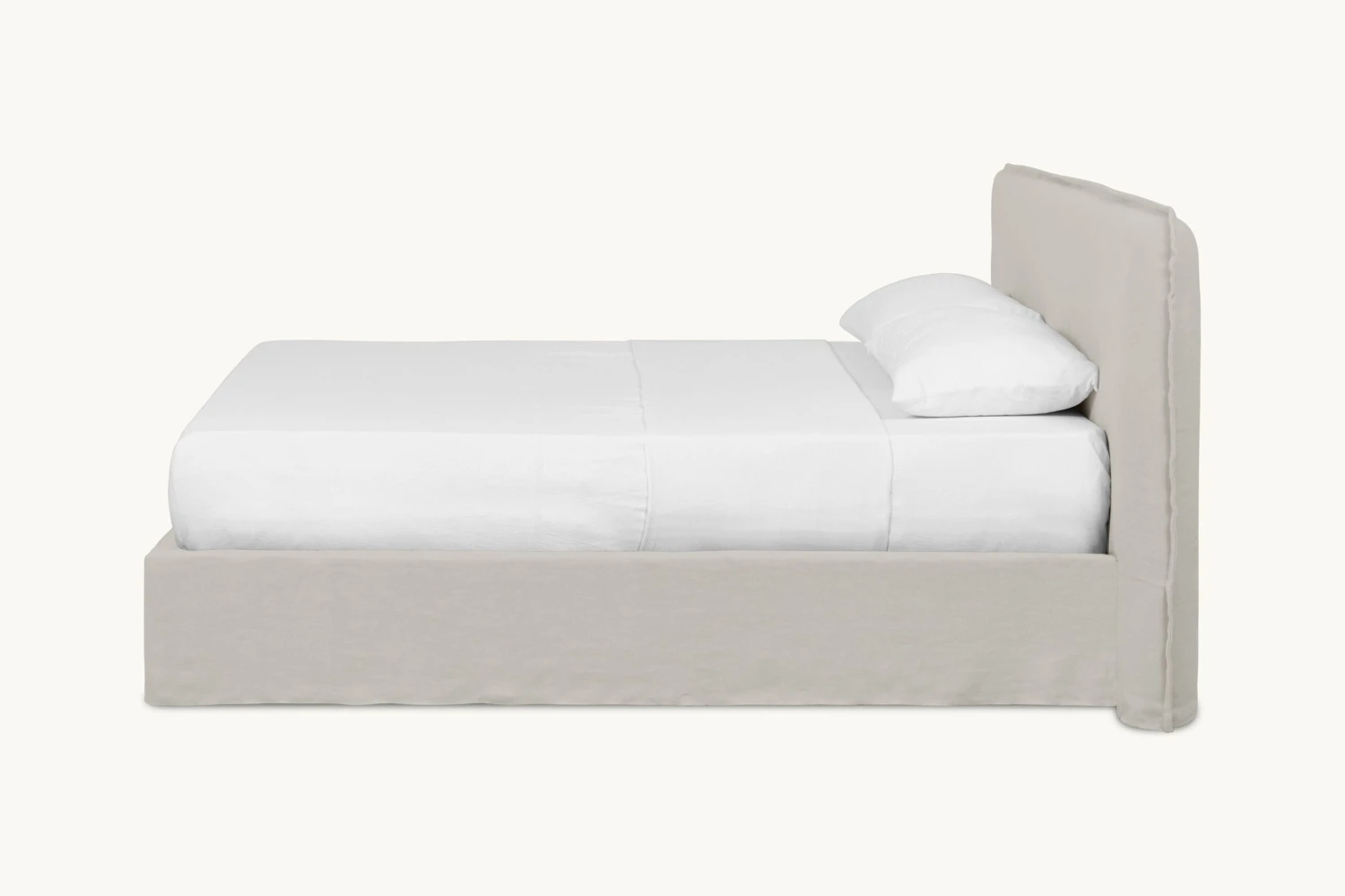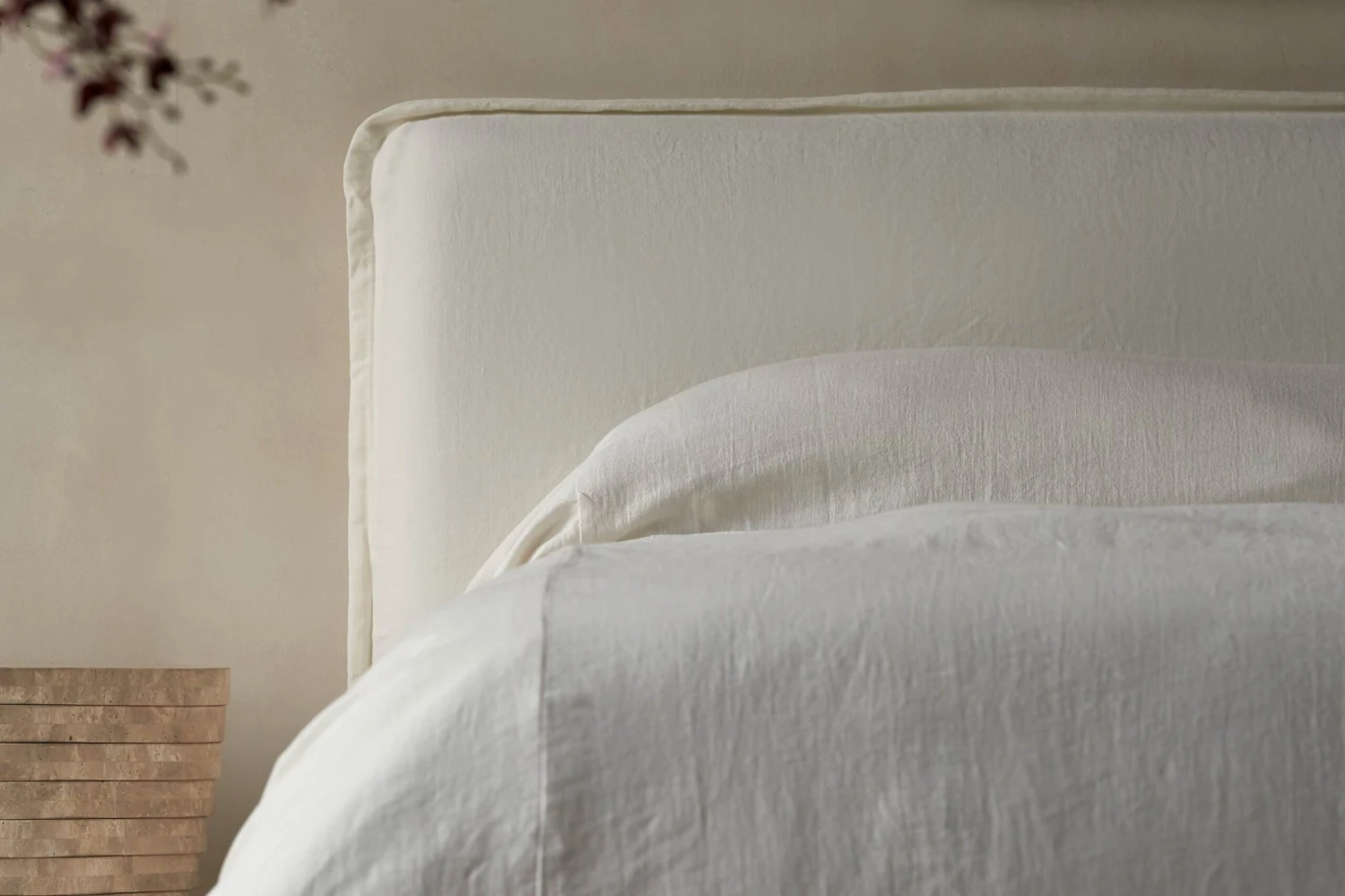 Neva’s iconic shape and playful exposed seam, transformed into an oasis of slipcovered comfort for the bedroom.