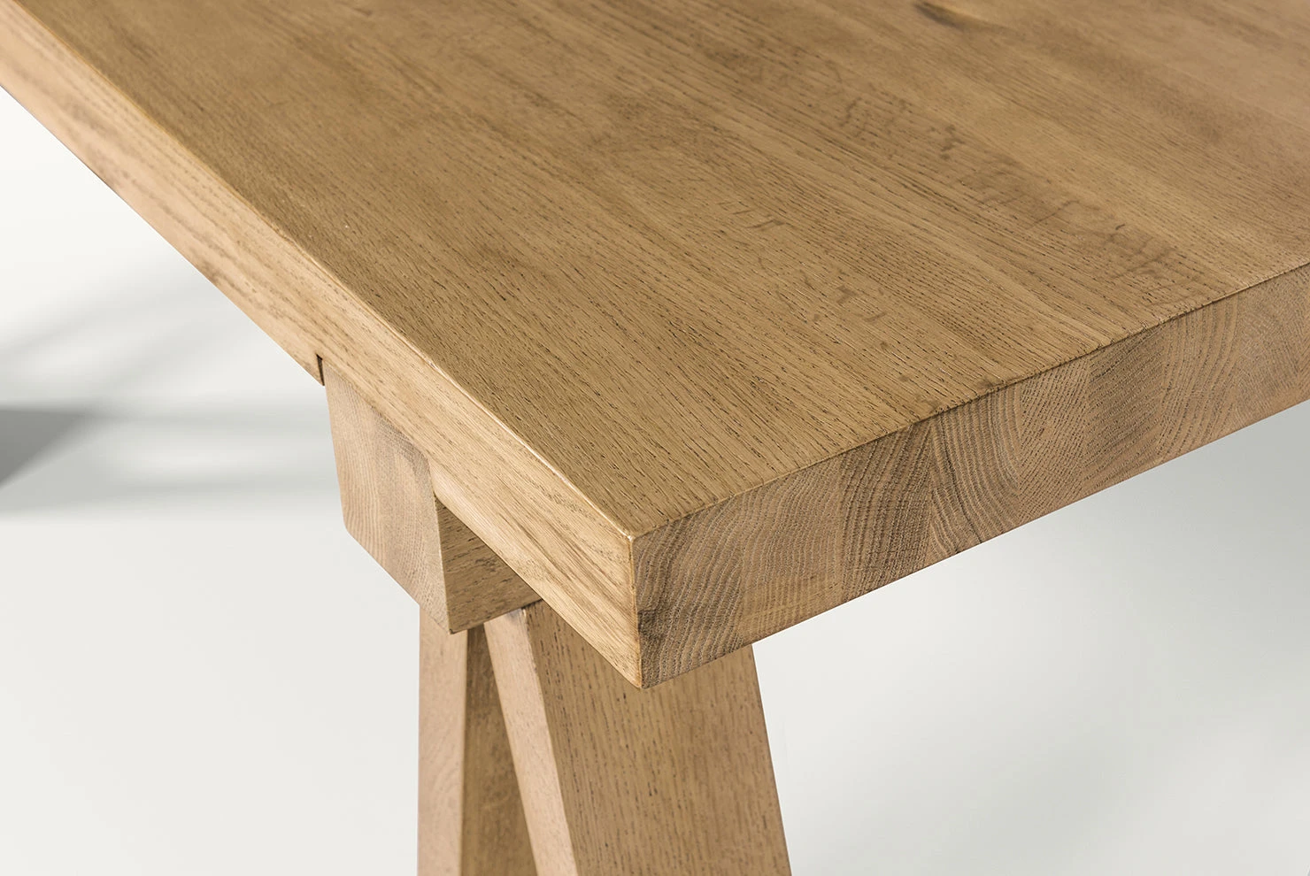 The quintessential A-frame table gets a fresh take. Rylance’s solid American oak, grand proportions, elegant joinery, and gently hammered detail inject modernity into a beloved, timeless shape.
